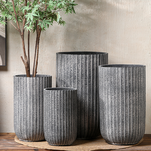 식물에 대한 사용자 정의 섬유 점토 화분 꽃 야외 대형 정원 장식 도매 대량 현대 디자인 블랙 화이트